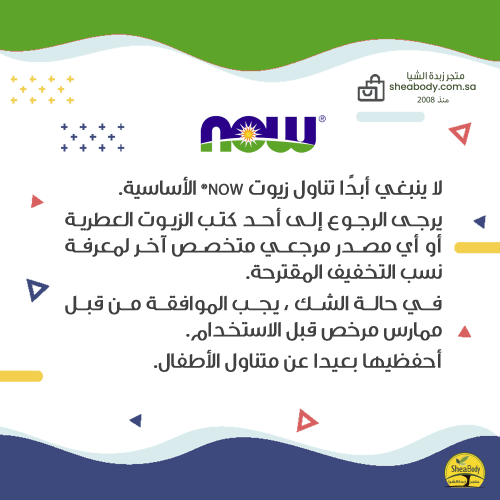 هذا المزيج مخفف من قبل وجاهز للاستخدام. ننصحك بقراءة كتاب عن الزيوت العطرية أو مصادر أخرى متخصصة للاستخدامات المقترحة.
