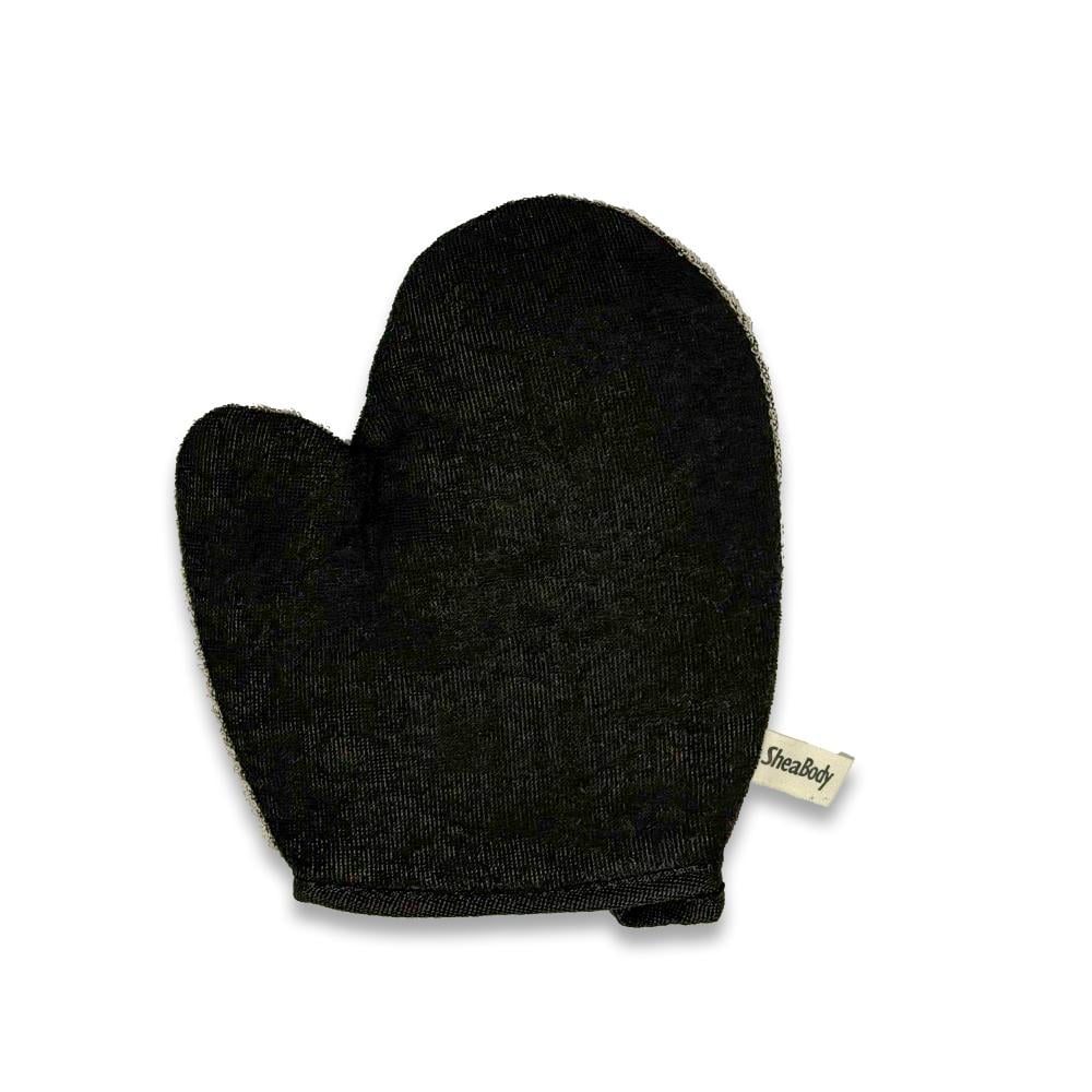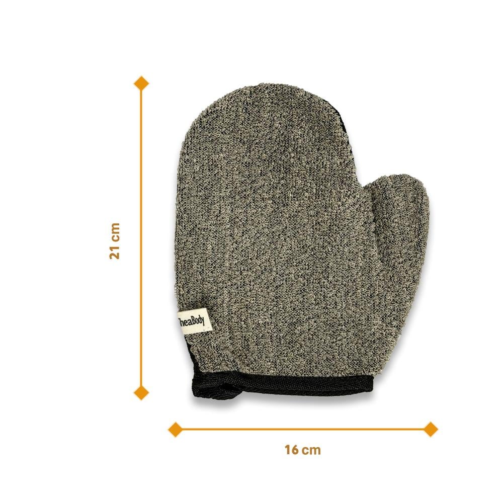 قفاز الاستحمام الأسود مفتوح كبير بأصبع الإبهام من القنب الطبيعي وقطن رامي وجه خشن و وجه ناعم